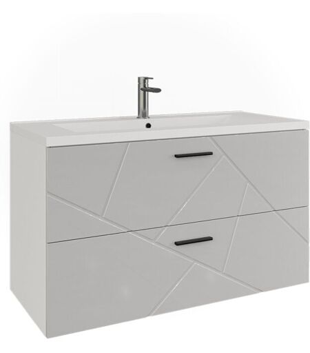Vicco Mobiletto per lavabo Irma, Bianco/bianco lucido, 100 x 57 cm con 2 cassetti,