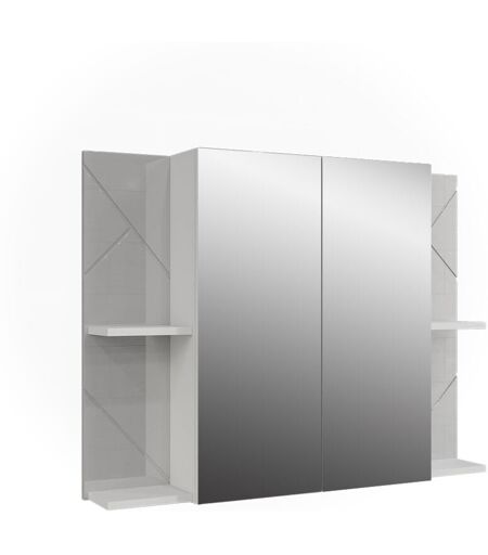 Vicco Mobile a specchio per il bagno Irma, Bianco/bianco lucido, 100 x 75 cm con 2 porte,