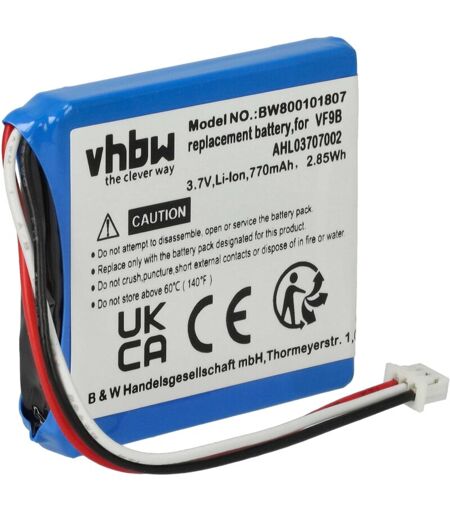 vhbw - the clever way - Batteria ricaricabile di ricambio, compatibile e di alta qualità, ad alta capacità, per dispositivo di navigazione e GPS (Può trovare tutti i modelli corrispondenti qui di seguito) - La batteria può essere caricata con il caricabatterie standard o con uno compatibile - Le nostre batterie ricaricabili soddisfano tutti i requisiti rilevanti per la sicurezza operativa CONTENUTO DELLA SPEDIZIONE: - 1x batteria ricaricabile SPECIFICHE TECNICHE: - Tecnologia: Li-Ion - senza effetto memoria - Capacità: 770 mAh - Tensione: 3,7 V - Energia: 2,85 Wh - Numero di celle: 1 - Peso: 15 g - Dimensioni (L x l x A): 3,8 x 3,7 x 0,6 cm COMPATIBILE CON TomTom Start 2 Regional, Start Europe, Start Regional Per garantire la compatibilità, verificare se la batteria ricaricabile attualmente in uso è presente nell'elenco. SOSTITUISCE: - AHL03706001, VF9, AHL03707002, VF9B Accessori e pezzi di ricambio di alta qualità. Per prolungare la durata di vita dei Suoi apparecchi elettrici. ...