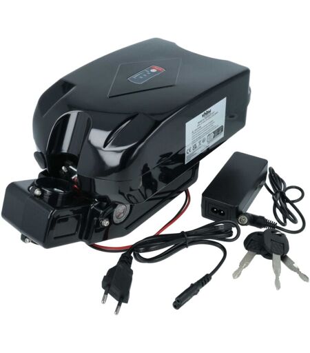 vhbw - the clever way - Batteria ricaricabile di ricambio, compatibile e di alta qualità, ad alta capacità, per bicicletta elettrica (Può trovare tutti i modelli corrispondenti qui di seguito) - La batteria può essere caricata con il Suo caricabatterie standard o con uno compatibile - Le nostre batterie ricaricabili soddisfano tutti i requisiti rilevanti per la sicurezza operativa CONTENUTO DELLA SPEDIZIONE: - 1x batteria da tubo sella (tipo frog) - 2x chiave - 1x caricabatterie - 1x supporto SPECIFICHE TECNICHE: BATTERIA (da fissare al tubo sella) - Tecnologia: Li-Ion (senza effetto memoria) - Capacità: 13,2Ah - Tensione: 24V - Energia: 316,8Wh - Peso: 2440g - Dimensioni: 26 x 14,8 x 9cm - Numero di celle: 42 - Battery-Management-System - Protezione da temperatura/sovraccarico - Tasto on/off - Indicatore di carica LED - Chiudibile a chiave - Possibili fino a 1000 cicli di ricarica - Presa a 1 pin per caricabatterie - Tappino in gomma per presa di ricarica SUPPORTO - Dimensioni: 24,5 ...