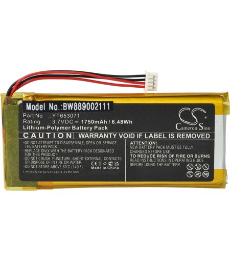 vhbw - the clever way - Batteria ricaricabile di ricambio, compatibile e di alta qualità, ad alta capacità, per lettore MP3, video e music player, lettore musicale (Può trovare tutti i modelli corrispondenti qui di seguito) - La batteria può essere caricata con il Suo caricabatterie standard o con uno compatibile - Le nostre batterie ricaricabili soddisfano tutti i requisiti rilevanti per la sicurezza operativa CONTENUTO DELLA SPEDIZIONE: - 1x batteria ricaricabile SPECIFICHE TECNICHE: - Tecnologia: Li-Poly - Capacità: 1750 mAh - Tensione: 3,7 V - Energia: 6,48 Wh - Altezza: ca. 0,7mm - Numero di celle: 1 - Peso: 32 g - Dimensioni (Lung. x Larg. x Alt.): 7,3 x 3,2 x 0,7 cm Per garantire la compatibilità, verificare se la batteria ricaricabile attualmente in uso è presente nell'elenco. SOSTITUISCE: - xDuoo YT653071 Accessori e pezzi di ricambio di alta qualità. Per prolungare la durata di vita dei Suoi apparecchi elettrici. ...