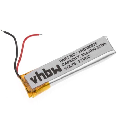 vhbw - the clever way - Batteria ricaricabile di ricambio, compatibile e di alta qualità, ad alta capacità, per cuffie e auricolari senza fili (cuffie wireless) (Può trovare tutti i modelli corrispondenti qui di seguito) - La batteria può essere caricata con il Suo caricabatterie standard o con uno compatibile - Le nostre batterie ricaricabili soddisfano tutti i requisiti rilevanti per la sicurezza operativa CONTENUTO DELLA SPEDIZIONE: - 1x batteria ricaricabile SPECIFICHE TECNICHE: - Tecnologia: Li-Poly - Capacità: 60 mAh - Tensione: 3,7 V - Energia: 0,22 Wh - Dimensioni (L x l x A): 3,8 x 0,9 x 0,4 cm - Numero di celle: 1 COMPATIBILE CON Plantronics Voyager Legend Per garantire la compatibilità, verificare se la batteria ricaricabile attualmente in uso è presente nell'elenco. SOSTITUISCE: - AHB390836, B350735, CPL-556, HS-11 Accessori e pezzi di ricambio di alta qualità. Per prolungare la durata di vita dei Suoi apparecchi elettrici. ...