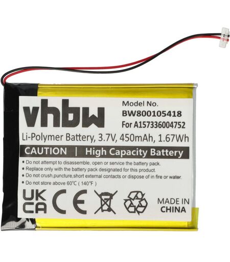 vhbw - the clever way - Batteria ricaricabile di ricambio, compatibile e di alta qualità, ad alta capacità, per lettore MP3, video e music player, lettore musicale (Può trovare tutti i modelli corrispondenti qui di seguito) - La batteria può essere caricata con il Suo caricabatterie standard o con uno compatibile - Le nostre batterie ricaricabili soddisfano tutti i requisiti rilevanti per la sicurezza operativa CONTENUTO DELLA SPEDIZIONE: - 1x batteria ricaricabile SPECIFICHE TECNICHE: - Tecnologia: Li-Poly - Capacità: 450 mAh - Tensione: 3,7 V - Energia: 1,67 Wh COMPATIBILE CON Samsung YP-T10QB/XSH, YP-T10JR, YP-T10JAU Per garantire la compatibilità, verificare se la batteria ricaricabile attualmente in uso è presente nell'elenco. SOSTITUISCE: - A157336004752 Accessori e pezzi di ricambio di alta qualità. Per prolungare la durata di vita dei Suoi apparecchi elettrici. ...