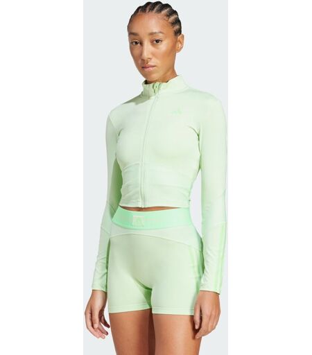 Adidas Hyperglam Rib Copertura con zip XS Semi Green Spark / Lime Burst
