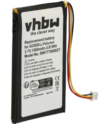 vhbw - the clever way - Batteria ricaricabile di ricambio, compatibile e di alta qualità, ad alta capacità, per dispositivo di navigazione e GPS (Può trovare tutti i modelli corrispondenti qui di seguito) - La batteria può essere caricata con il caricabatterie standard o con uno compatibile - Le nostre batterie ricaricabili soddisfano tutti i requisiti rilevanti per la sicurezza operativa CONTENUTO DELLA SPEDIZIONE: - 1x batteria ricaricabile SPECIFICHE TECNICHE: - Tecnologia: Li-Poly - Capacità: 1300 mAh - Tensione: 3,7 V - Energia: 4,81 Wh - Numero di celle: 1 - Peso: 23 g - Dimensioni (L x l x A): 6 x 3,6 x 0,5 cm COMPATIBILE CON TomTom XL 330s, 330 Accessori e pezzi di ricambio di alta qualità. Per prolungare la durata di vita dei Suoi apparecchi elettrici. ...