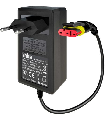 vhbw - the clever way Alimentatore di alta qualità per la stazione di ricarica del Suo robot tagliaerba Questo adattatore di ricambio di vhbw fornisce un'alimentazione sicura al Suo dispositivo. Con la spina europea è possibile collegare il dispositivo alla rete. L'alimentatore è perfetto per essere utilizzato come cavo di alimentazione sostitutivo o come alimentatore aggiuntivo. L'alimentatore è impermeabile e può essere utilizzato all'aperto. Tuttavia, è essenziale assicurarsi che la spina di rete non venga a contatto con l'umidità. Si prega di osservare questa precauzione per garantire un funzionamento sicuro. CONTENUTO DELLA SPEDIZIONE: - 1x cavo di alimentazione SPECIFICHE TECNICHE: - Input CA: 100-240 V, 0,8 A - Output DC: 28 V / 1,3 A - Potenza: 36,4 W - Frequenza: 50/60 MHz - Peso: 139 g - Colore: nero - Connessioni: 1x spina euro, 1x spina specifica dispositivo - Tensione nom.: 28 V - Protezione da sovraccarico, corto circuito e surriscaldamento - Adattatore AC/DC COMPATIBILE ...
