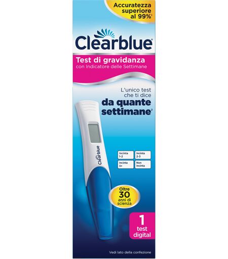 Clearblue Test di gravidanza con Indicatore delle Settimane Descrizione Il Test di Gravidanza Clearblue con indicatore delle settimane grazie alla sua tecnologia Smart Dual Sensor, non solo indica il risultato "Incinta" o "Non incinta", ma dice anche da quanto tempo. Rileva la presenza dell'ormone d ...