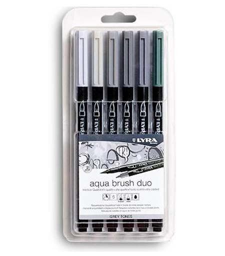 Lyra Pennarello Acquerello A Doppia Punta E Pennello In Toni Di Grigio. Blister Da 6 Unità Assortite
