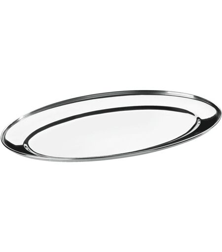 Vassoio in acciaio inox 18/0 lucido di forma ovale, molto stabile, con bordo arrotondato in rilievo. Impilabile. Adatto alla lavastoviglie. ...