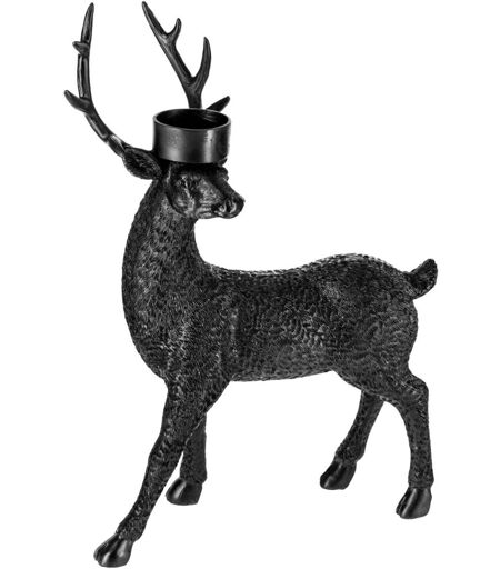Cervo decorativo Akane con portacandele; 33x15x44 cm (LxPxH); nero/grigio