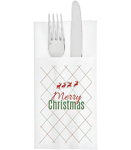 Tovaglioli portaposate in tessuto di alta qualità. Motivo natalizio. Misura aperto 40x40 cm. Materiale: Airlaid (55 g/m²) ...