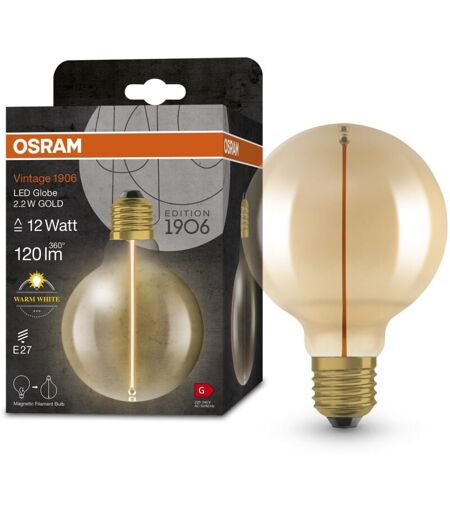 Osram - Lampada led Vintage 1906 Classic Globe95 fil, E27, globo, oro, 2.2W, 120lm, 2700K, luce bianca calda, filamento magnetico, basso consumo
