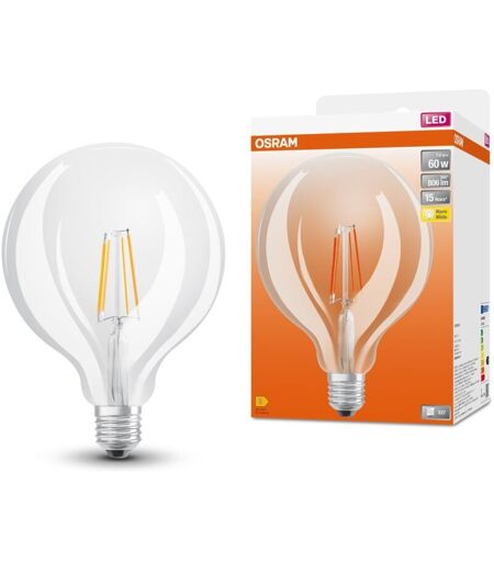 Osram - LED-Lampen, klassische Ballform, 60 Watts Ersatz, E27, G125, 2700 Kelvin, Warm weiß, Klares Glas, single Pack