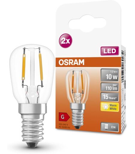 Osram - Lampada led special T26 fil 10 con attacco E14, dimensioni ridotte, confezione doppia, 1,3W, 110lm, 2700K, luce bianca calda, buona resa