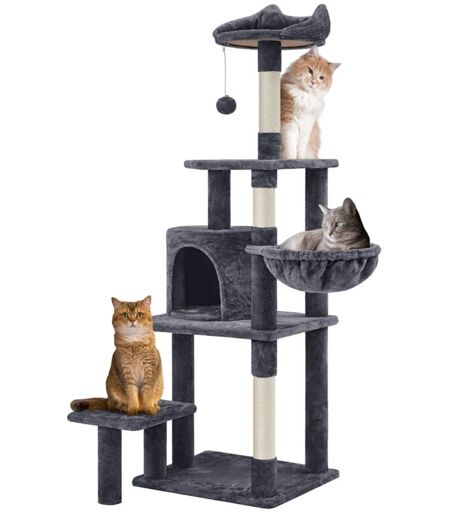 YAHEETECH - Albero Tiragraffi in Sisal Naturale e Truciolato 48,5 cm × 40,5 cm × 145 cm Torre per Gatti con Posatoio Gioco Condominio Scuro Grigio