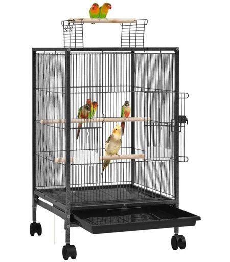YAHEETECH Gabbia per Uccelli in Metallo 45,5 cm x 45,5 cm x 79 cm, con Posatoio Mangiatoia Vassoio con Ruote, Voliera per Pappagallini Canarini