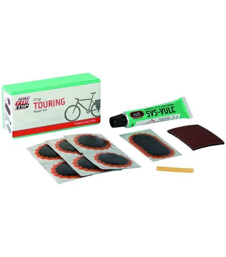 Kit riparazione cicli tip-top - assortimento touring - per riparazioni camere cicli - 6 toppe tonde f1 diam. 25 mm, - 1 toppa ovale f2 50x25 mm - tubo mastice 5g - carta vetrata ...