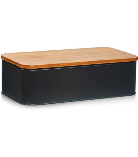 Zeller - Present 25377 Portapane in ceramica con coperchio di bambù, colore: nero opaco/Metallo