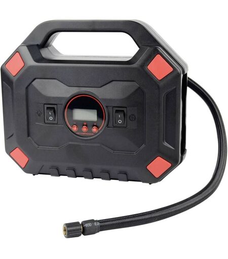 Dettagli tecnici Dimensione del prodotto, larghezza 190 mm Dimensione del prodotto, lunghezza 220 mm Dimensioni prodotto Altezza 85 mm Peso 845 g Compressore d'aria compatto Questo compressore compatto della casa Brüder Mannesmann Tools assorbe la sua energia dalla rete di bordo a 12 volt. È dotato di una lampada da lavoro a LED collegabile separatamente e può spegnersi automaticamente in caso di pressione preimpostata. La pressione nominale massima del compressore compatto è di 820 kPa ( 8,2 bar). Nella fornitura sono inclusi anche due adattatori per valvole per pneumatici auto, palle e molto altro ancora. Testo tradotto automaticamente Caratteristiche Funzionamento tramite accendisigari da 12 Volt LED di lavoro a commutazione separata Compressore spegne automaticamente due adattatori per valvole per pneumatici auto, palloni ecc. Max. A pressione preimpostata. Pressione nominale 820 kPa (8,2 bar) Incluso nella consegna 1x compressore compatto 12V 2x adattatori per valvole Requisiti ...