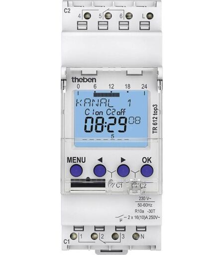 Theben 6120130 Temporizzatore digitale Settimanale 2600 w IP20 Display illuminato, Riserva di carica, Cambio automatico -