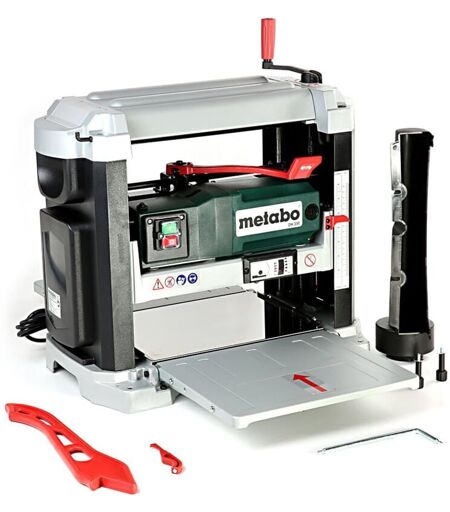 Rabotatrice 1800W METABO 330mm DH 330 - 200033000 Descrizione del prodotto Ideale per un utilizzo mobile grazie alla sua leggerezza. Riduttore stabile con avanzamento regolare del pezzo. Regolazione pratica dell’altezza tramite una manivella. Riduttore stabile con avanzamento regolare del pezzo. Motore universale potente per un’azione di taglio forte e una fresatura regolare. Protezione anti-ripartenza: impedisce qualsiasi avvio involontario dopo un’interruzione di corrente. Regolazione precisa dello spessore della scheggia per una fresatura rapida e accurata. Grandi tavoli di alimentazione e di ricezione che consentono il passaggio di pezzi lunghi. Blocco della fresatrice che impedisce un cambio involontario della regolazione dell’evacuazione delle trucioli. Caratteristiche tecniche Potenza assorbita: 1800W Tavolo di fresatura L x l: 840 x 330 mm Altezza/larghezza di passaggio: 152 / 330 mm Dimensioni: 579 x 857 x 574 mm Contenuto della confezione Rabotatrice 1800W METABO ...
