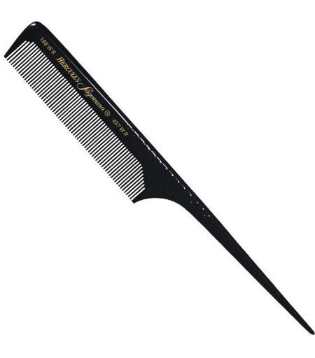 8", con griglia di presa, manico piatto, per tutti i lavori in salone e per l'uso quotidiano. I pettini da lavoro originali Sägemann - fatti di gomma naturale e miscela di gomma dura di alta qualità - sono assolutamente rispettosi dei capelli e del cuoio capelluto. Sono rifiniti a mano su tutti i lati, altamente lucidati e scivolano delicatamente e facilmente tra i capelli. Hanno denti segati tecnicamente di alta qualità e finemente macinati, punte e fianchi dei denti arrotondati e senza bave. La superficie non porosa garantisce l'igiene, è resistente a tutti i prodotti di trattamento e cura dei capelli ed è resistente al calore. I pettini sono modellati ed elastici. Hanno una qualità costantemente costante! ...