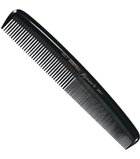 7", modello forte, con schiena soda e rotonda. I pettini da lavoro originali Sawmann - fatti di gomma naturale e miscela di gomma dura di alta qualità - sono assolutamente rispettosi dei capelli e del cuoio capelluto. Sono rifiniti a mano su tutti i lati, altamente lucidati e scivolano delicatamente e facilmente tra i capelli. Hanno denti segati tecnicamente di alta qualità e finemente macinati, punte e fianchi dei denti arrotondati e senza bave. La superficie non porosa garantisce l'igiene, è resistente a tutti i prodotti di trattamento e cura dei capelli ed è resistente al calore. I pettini sono modellati ed elastici. Hanno una qualità costantemente costante! ...