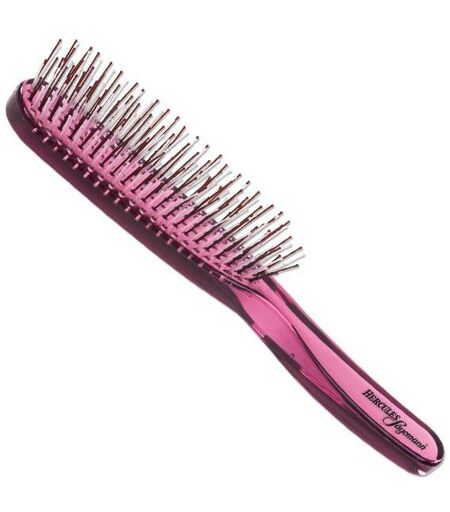 La spazzola per ogni capello. Le spille di nylon di alta qualità, specialmente arrotondate, in una disposizione speciale, districano e ordinano i capelli e sono delicate sul cuoio capelluto. Questa spazzola è veloce e delicata da usare, anche su capelli molto danneggiati e aggrovigliati. Nessuna lacerazione o strappo. Adatto a tutti i tipi di estensione. I perni appositamente disposti, molto fini e morbidi, mettono fine ai fastidiosi strappi. Adatto alla diffusione dei prodotti di cura, ogni colpo di spazzola favorisce la circolazione del sangue e quindi la crescita dei capelli. Lunghezza circa 21,5 cm. ...
