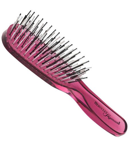 La spazzola perfetta per i bambini e la dimensione giusta per la borsetta. Le spille di nylon di alta qualità, specialmente arrotondate, in una disposizione speciale, districano e ordinano i capelli e sono delicate sul cuoio capelluto. Questa spazzola è veloce e delicata da usare, anche su capelli molto danneggiati e aggrovigliati. Nessuna lacerazione o strappo. Adatto a tutti i tipi di estensione. I perni appositamente disposti, molto fini e morbidi, mettono fine ai fastidiosi strappi. Adatto alla diffusione dei prodotti di cura, ogni colpo di spazzola favorisce la circolazione del sangue e quindi la crescita dei capelli. Lunghezza circa 15 cm. ...