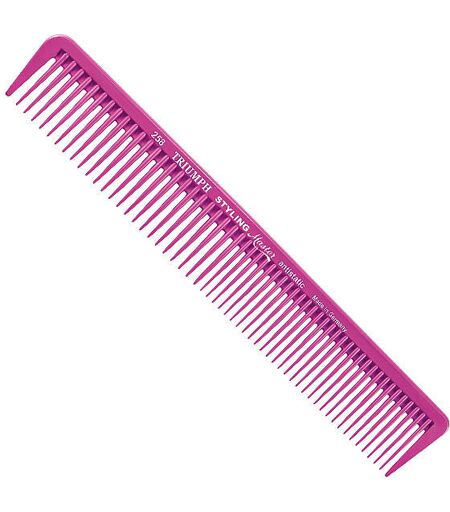 8", dentatura grossolana. I pettini da lavoro Original-Sägemann sono formosi, elastici e di qualità costante! assolutamente amichevole per i capelli e il cuoio capellutorifinito a mano, altamente lucidato e scivola delicatamente e facilmente tra i capellidenti segati tecnicamente di alta qualità e finemente macinatila superficie resistente al calore garantisce l'igieneresistente a tutti i prodotti di trattamento e cura dei capelli I pettini di plastica sono modellati nella loro forma finale in una sola operazione. La qualità e le caratteristiche di un pettine sono determinate dalla qualità dello stampo e dalla plastica utilizzata. Tutti i pettini di plastica del marchio Triumph sono fabbricati in stampi di alta qualità e sono quindi privi di bave grossolane che danneggiano i capelli. Le materie plastiche utilizzate, policarbonato e poliossimetilene (POM), soddisfano perfettamente le esigenze del parrucchiere attento al prezzo per uno strumento di alta qualità. Il policarbonato utilizzato è eccezionalmente resistente agli urti. In poche parole: i pettini in policarbonato sono quasi impossibili da rompere. La plastica utilizzata per i pettini con manico ad ago, il poliossimetilene (abbreviato POM), è anche caratterizzata da eccellenti proprietà elastiche. Entrambi i materiali sono caratterizzati da un'ottima stabilità dimensionale e da un'eccellente resistenza alla maggior parte delle sostanze chimiche che si incontrano nel lavoro quotidiano di parrucchiere. ...