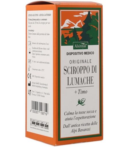 SCIROPPO DI LUMACHE - Descrizione Dispositivo medico per trattare la tosse secca e lenire l'irritazione della mucosa oro - faringea nonché i disturbi associati quali mal di gola difficoltà di deglutizione e raucedine. Inoltre lo sciroppo aiuta l'espettorazione. Contiene muco che forma un film p… ...