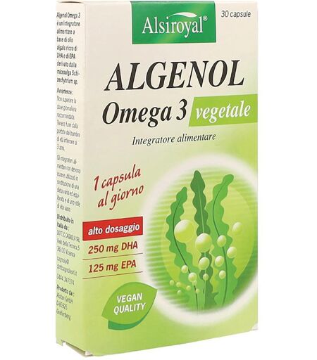 ALGENOL - Omega 3 vegetale - Descrizione Integratore alimentare a base di olio di alga Schizochytrium. È ricco in EPA e DHA, costituisce una fonte diretta e una soluzione vegetale. Il DHA contribuisce al mantenimento della normale funzione cerebrale e della vista. L'EPA e il DHA contribuiscono alla… ...