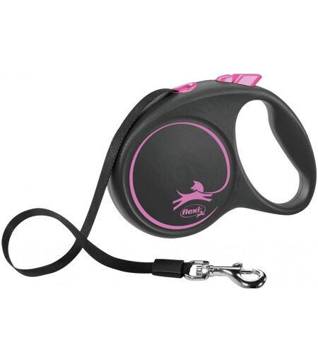 Flexi Guinzaglio per Cani in Fettuccia L 5 mt fino a 50 Kg Black Design Rosa