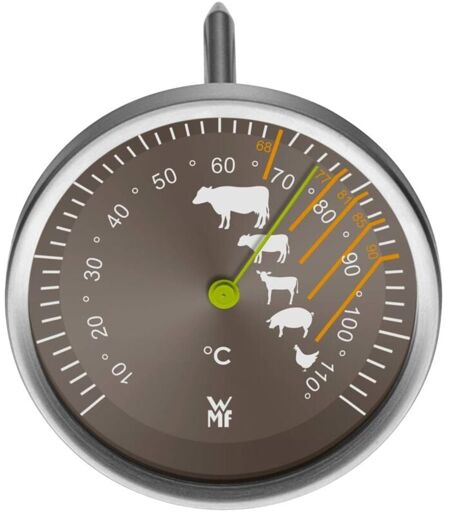 Perfetto e al punto: con il termometro per arrosti di WMF si misura la temperatura interna degli arrosti succosi durante tutto il tempo di cottura nel forno. Basta inserire il mandrino lungo 13 centimetri in Cromargan® inossidabile al centro della carne. Il termometro è resistente al calore fino a 250 gradi, il chiaro simbolismo e la scala chiara indicano quando il pollame, il maiale, l'agnello o il manzo arrosto hanno raggiunto la temperatura perfetta. Quindi l'arrosto rimane bello e succoso dall'interno e croccante dall'esterno. Gli amanti della carne e i professionisti della cucina giurano sul pratico termometro WMF e lo usano anche durante la grigliata. Con gli utensili da cucina di WMF cucinerete non solo con desiderio e passione, ma anche perfettamente nei minimi dettagli. Cos'è un pizzico e che cosa un colpo? L'elegante bilancia da cucina ti rivela e misura ogni grammo di ogni millilitro in modo accurato. Chi vuole sapere quando arrostire torte o uova per la colazione sono per ...