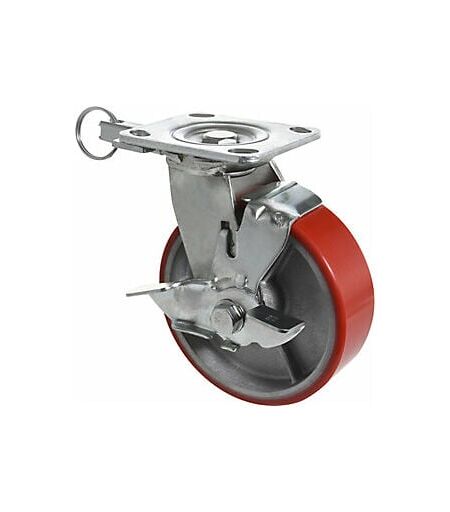 Rotella pivottante e a supporto fisso per carichi pesanti, 3 in 1, portata 400 kg, Ø x larghezza ruote 152 x 50 mm. Fornitura = montato. Diametro ruote = 152 mm. Forma = rotella pivottante con fermo, rotella a supporto fisso. Materiale ruote = poliuretano (PU). Tipo di fissaggio = con piastra di fissaggio. Materiale corpo = ghisa. Portata a 4 km/h = 400 kg. Larghezza ruote = 50 mm. Altezza d'ingombro = 181 mm. Cuscinetti ruota = cuscinetto a rulli. Sporgenza rotelle pivottanti = 40 mm. Diametro fori filettati = 11 mm. Versione = rotelle per carichi pesanti. Dimensioni piastra rotella a supporto fisso mm = 100x115 mm. Dimensioni piastra rotella pivottante = 100x115 mm. Interasse fori filettati = 74x85 mm. Direction Lock. Leva di conversione. Potente freno laterale. Materiale Alloggiamento, piastra di fissaggio e freno laterale della rotella per carichi pesanti/rotella a supporto fisso sono in acciaio zincato particolarmente spesso. Il corpo della rotella è in ghisa pesante e robusta, ...