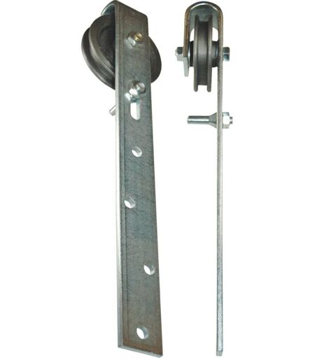per cancelli in legno azionati manualmente con perno scorrevole · gancio in acciaio piatto zincato · ruota di scorrimento in ghisa di alta qualità con cuscinetto a rulli ...
