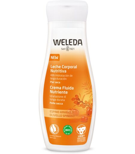 WELEDA - Crema Fluida Nutriente - Descrizione Nutre intensamente ed idrata la pelle a lungo, grazie alla sua ricca formula a base di olivello spinoso 100% bio. Ingredienti 100% di origine naturale. Componenti Water (aqua), Sesamum indicum (sesame) seed oil*, glycerin, Helianthus annuus (sunflower) … ...