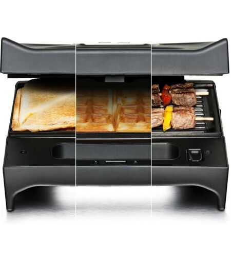 Rommelsbacher Multi Toast & Grill swg 700 'Max', 3 piastre intercambiabili antiaderenti per sandwich, waffle belghe, grigliate, 700 Watt, nero/acciaio inox
