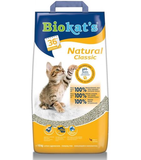 Lettiera agglomerante a granuli grossi Lettiera ad uso universale con alta capacità di assorbimento grazie alla qualità dell'argilla naturale. A granuli grossi. Assorbimento degli odori molto fort ... Lettiera agglomerante a granuli grossi Lettiera ad uso universale con alta capacità di assorbimento grazie alla qualità dell'argilla naturale. A granuli grossi. Assorbimento degli odori molto forte grazie alla superficie specifica dell'argilla naturale. Ogni grammo di argilla naturale ha una superficie di ca. 60-100 m². Forte assorbimento degli odori con materie prime del tutto naturali! La lettiera naturale a granulometria grossa di Biokat's forma zolle molto compatte. 10 kg - Durata: 36 giorni ...