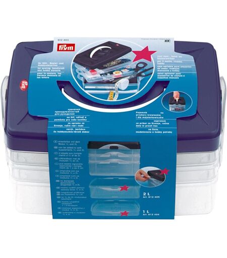 Descrizione Questa pratica scatola di stoccaggio a più clic offre molto spazio per gli articoli per cucire, artigianato e hobby su tre livelli. Le parti inferiori sono realizzate in plastica stabile e trasparente, che sono saldamente collegate tra loro con due chiusure a due clic sui lati corti. Anche il coperchio di prugne è plastica. La maniglia bianca si piega per il trasporto e si regola all'altezza del coperchio quando è piegata. Include tre moduli con due 1 litro e una capacità di 2 litri. Può essere facilmente ingrandito con i moduli di estensione da 1 litro e 2 litri e quindi ampliato esattamente come richiesto. I moduli supplementari possono anche essere utilizzati senza il coperchio per conservare gli accessori per cuciture, artigianato e hobby. Avviso di sicurezza Keep away out of reach of children. ...