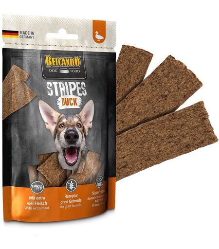 Snack Belcando Stripes all’Anatra 90g. Strisce naturali con carne di anatra, krill e lievito di birra. Grain free, ricche di proteine, gustose e facilmente digeribili. ...