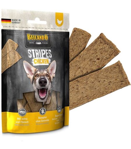 Snack Belcando Stripes al Pollo 90g. Strisce naturali con carne di pollo, krill e lievito di birra. Senza cereali, ricche di proteine e vitamine naturali. ...