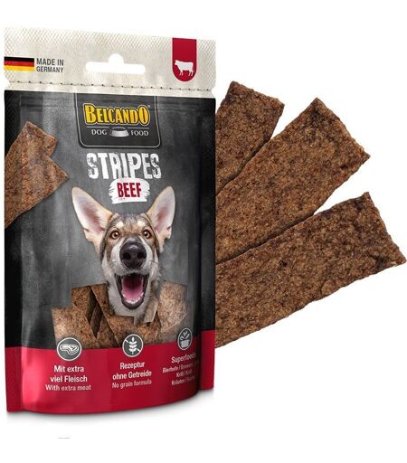 Snack Belcando Stripes al Manzo 90g con krill e lievito di birra. Naturali, senza cereali né zuccheri. ...