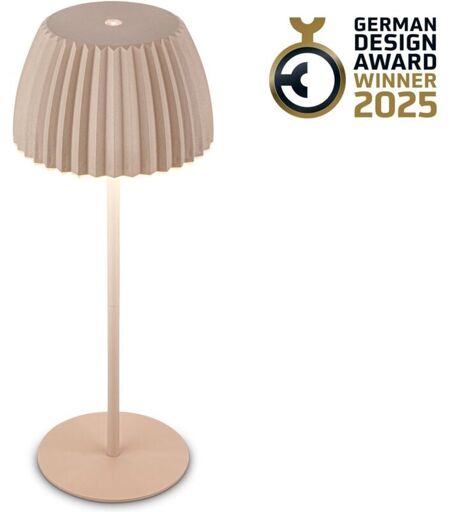 Lampada da tavolo ricaricabile RIFFLE in beige: Lampada premiata (German Design Award 2025, Best of Design Award 2025 di Schöner Wohnen, 2° posto Lampada dellanno) con paralume rigato e bordo luminoso che unisce estetica e funzionalità. Regolazione continua della luce: Il touchdimmer permette di modulare con precisione la luminosità, adattandosi a qualsiasi atmosfera e rendendo questa lampada da scrivania ricaricabile ideale per ogni ambiente domestico o professionale. Design regolabile e batteria duratura: Laltezza regolabile e la batteria da 2.400mAh garantiscono fino a 24 ore di illuminazione continua. La ricarica avviene comodamente tramite USB-C, rendendola perfetta come lampada comodino camera da letto. Protezione IP44 per interni ed esterni: Il design resistente agli schizzi dacqua consente di utilizzare questa lampade da tavolo senza fili sia in casa che allaperto, ideale per terrazze, balconi e spazi esterni eleganti. Interruttore pratico e compatto: Linterruttore On/Off ...