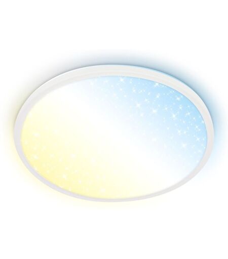 Pannello LED CCT piatto con effetto stella Questa moderna lampada LED di colore bianco combina un design sottile con un'elegante copertura a stella e fornisce un'illuminazione elegante in soggiorni, camere da letto o corridoi. Colore della luce regolabile individualmente Con un potente pannello LED da 30W (3.600lm), la temperatura del colore può essere regolata in modo flessibile tra il bianco caldo 3.000K e il bianco luce diurna 6.500K, ideale per qualsiasi atmosfera e occasione. Dimmerazione continua con funzione di memoria La luminosità può essere regolata in modo comodo e continuo utilizzando il telecomando in dotazione. Grazie alla funzione di memoria, l'ultima impostazione viene salvata per la massima comodità. Retroilluminazione morbida L'effetto di retroilluminazione integrato della lampada da soggiorno fornisce una piacevole luce indiretta che crea un'atmosfera armoniosa e valorizza visivamente l'ambiente. Design compatto e discreto Con un diametro di 375 mm e un'altezza di ...