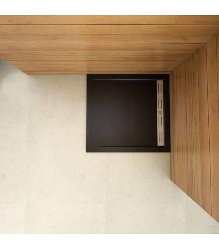 AICA ITALY Piatto Doccia Quadrato 76x76cm in Pietra Vulcanica e Resina Mista Finitura Pietra Nera Ruvida Ultraslim 3 cm