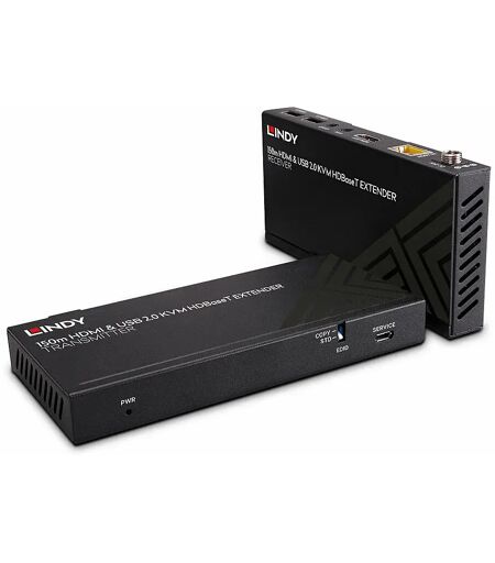 Lindy Extender HDBaseT Cat.6 KVM HDMI 4K60, USB 2.0 & IR, 150m. Tipo: Trasmettitore e ricevitore, Tecnologia di connessione: Cablato, Distanza massima di trasferimento: 150 m. Tipo di porta video locale del trasmettitore: HDMI. Tipo di porta video locale ...