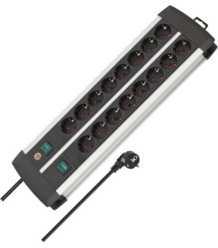 Brennenstuhl A1945152201391000916 1391000916-Base múltiple Premium-Alu-Line Technics con 2 y 3 interruptores (16 Tomas), Multicolor -
