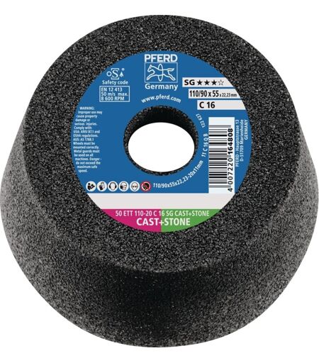 PFERD Tazza Ruota a 16 q Sg / c 16 q Sg, Tipo: Ett 50 110-20 c 16 q Sg, ø x Altezza x Foro 110 x 55 x 22,23 Millimetri, Velocità Massima. 8600 Giri / Min