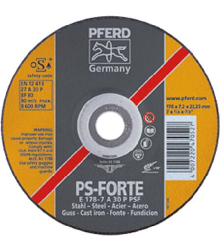 PFERD Disk Sbavatura Ps-Forte Per La Lavorazione Di Acciaio e Ghisa, ø x Spessore. : 178 x 7.2 Mm Modello Bent, Velocità Massima. 8600 Giri / Min